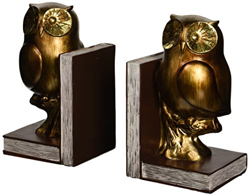 Metallic Finish Retro Perched Owl Bookends Set of 2