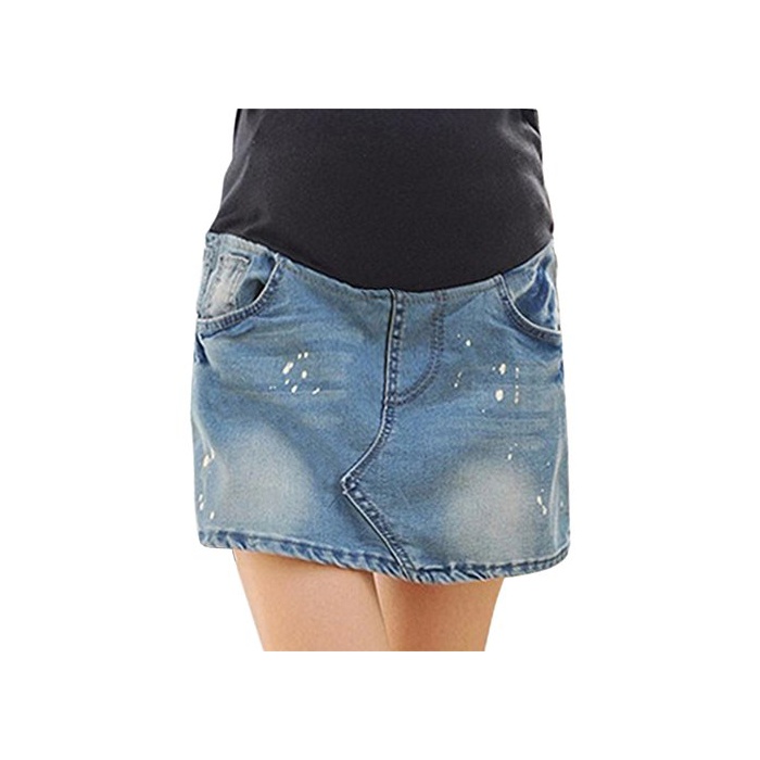 (Les Hiboux) 마타니티 스커트 바람 쇼트 데님 《규롯토》 웨스트 리브 진즈 팬츠