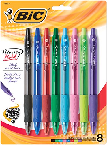 BIC Velocity Bold Fashion Retractable Ball Pen, Bold Point (1.6 mm), Assorted, 8-Count
