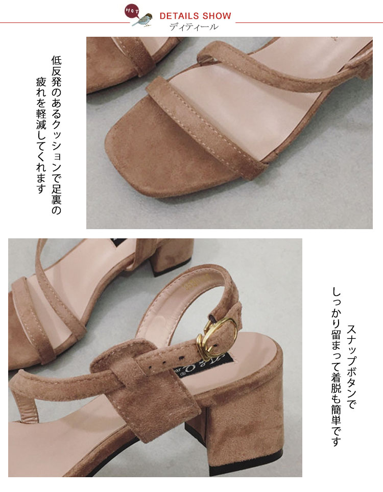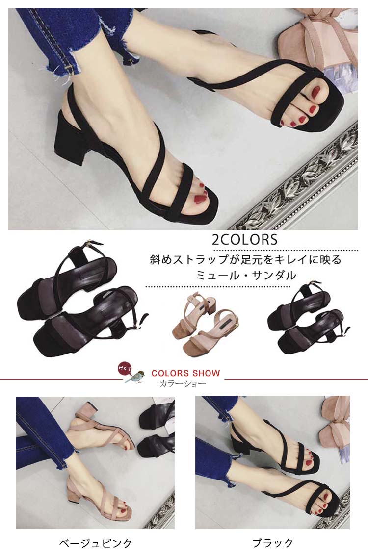 | 斜めストラップが足元をキレイに映るミュール・サンダルトレンドのスエード仕様が上品さ漂い、お洒落上級者に必見!安定感バツグンの太ヒールがちょうど良い高さで、歩きやすく、疲れない季節感のある涼やかなデザインが足元を爽やかに彩ってくれます!トレンドのスクエアトゥにデザインがきちんと感をプラスし、オフィスレディにも◎ | |