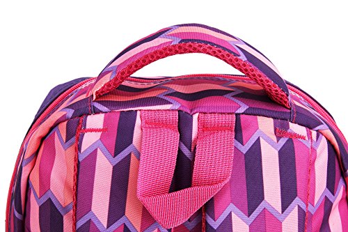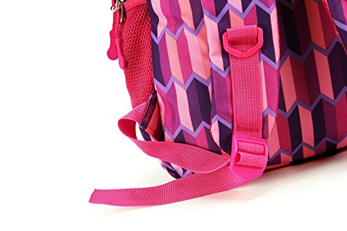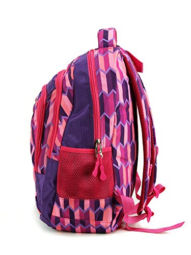 Product Description This school backpack is especially for girls. There are two models, pink and purple and size of this backpack is 18inch. It looks simple, cute and lovely, designed for school going kids. This bookbag has a large capacity and its comfortable. its built with high-quality soft materials, smooth Zippers and Adjustable straps which give you a better feeling when carrying. Just perfect for school, travelling or daily use. 0