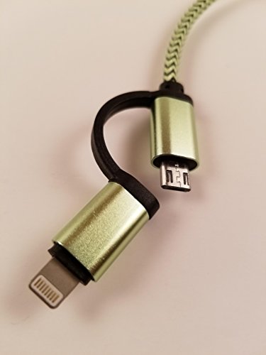 -. Title : iPhone Lightning & Android Micro USB 2 in 1 Braided Charge/Data Cable (Green) - 3ft.