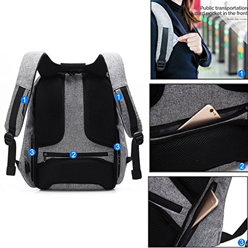 Features: 1. External USB with built-in charging cable provides a convinent charging of your electronic device anywhere. 2. Zippers are hidden from view when wearing the backpack, which will keep your belongings safe during your commutes 3. Built-in muti-pockets for carring notebook, tablet, cellphone and so on, keep all your belongs organized well 4. Backpack shoulder strap with a small pocket, you can place the bus card. 5. Backpack hidden pocket can be put into wallet, passport, mobile phones and other personal belongings, safe and convenient 6. 180 degree open design
