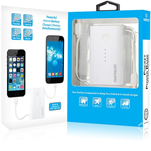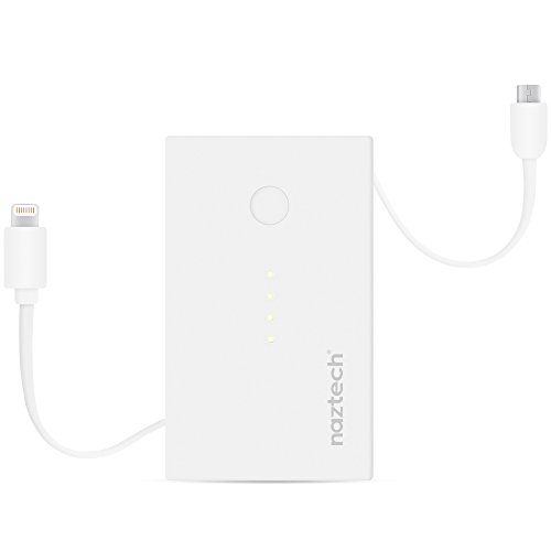 Naztech PB5000i Pocket Power Bank 5000mAh Capacity Portable Charger, 2 Built-in Cables: Apple MFi Lightning AND Micro USB, Universal Compatibility, Compact Battery, Simultaneously Charge 2 Devices