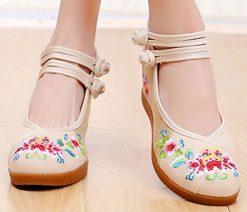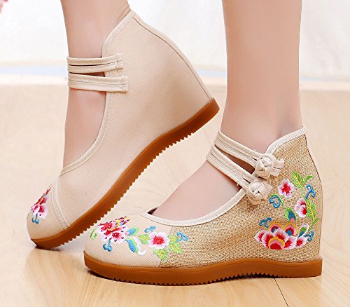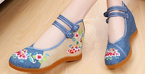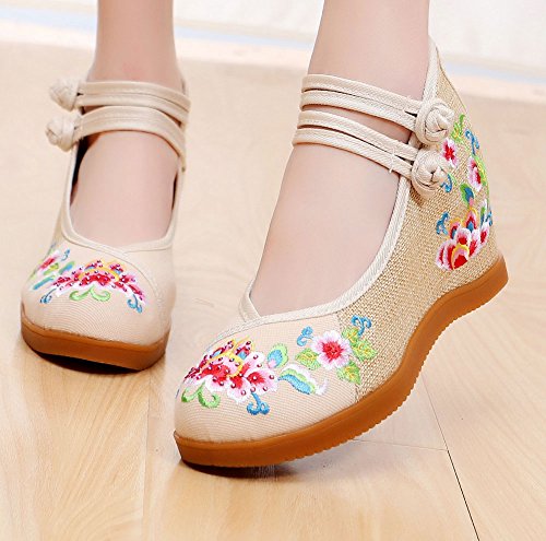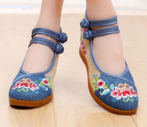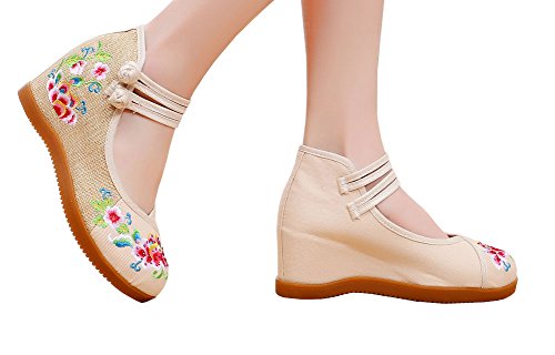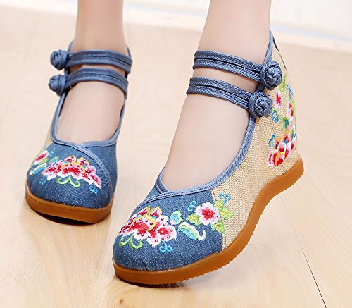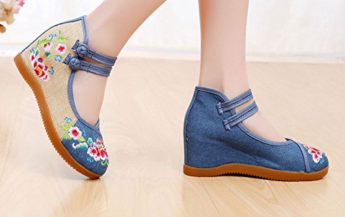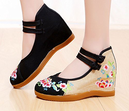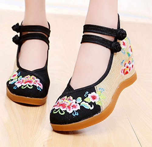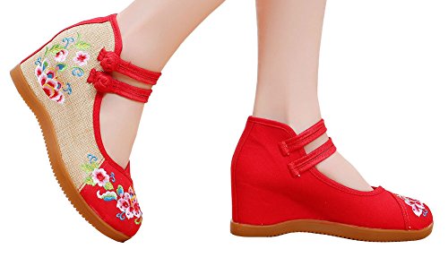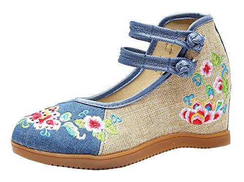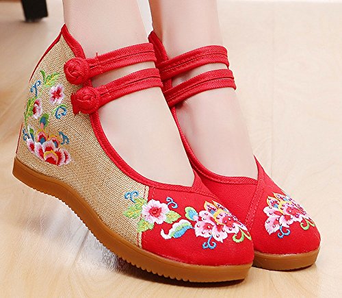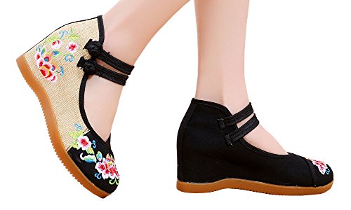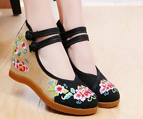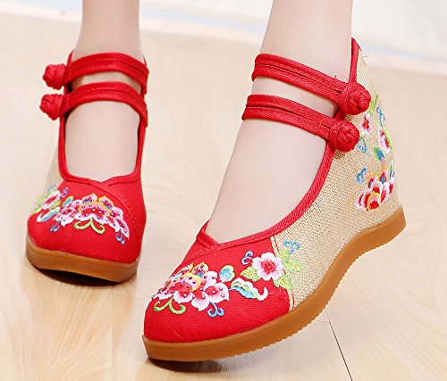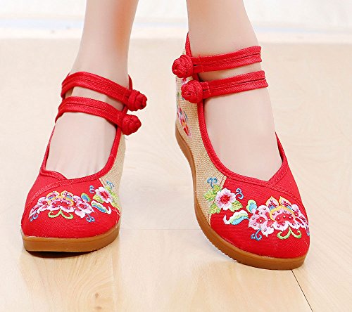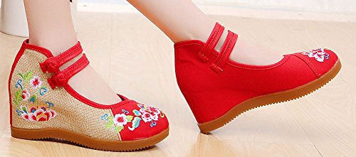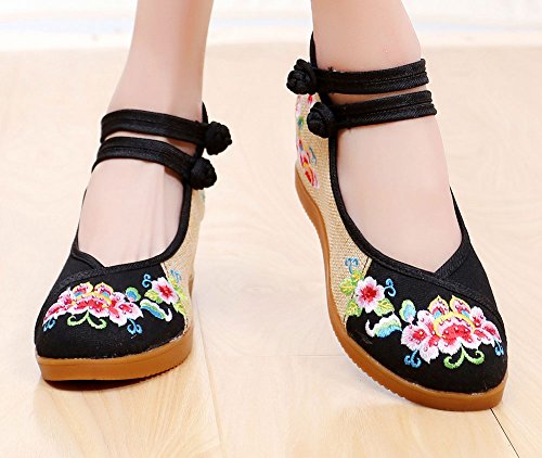 (AvaCostume)/Women's/Sandals/DIRECT FROM USA/AvaCostume Women's Hot Drilling Peony Embroidery Dance Wedges