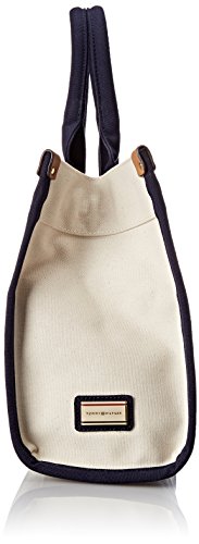 Keep up your preppy style with the Tommy Hilfiger® Canvas TH Print Medium Tote. Man-made, canvas tote flaunts a large brand logo at front. Snap closure. Dual rolled carry handles. Exterior features brand plaque at side, contrast trim, and tonal stitching. Flat base. Interior features three slip pockets for organization. Imported. Measurements: Bottom Width: 14 in Depth: 5 in Height: 11 1/4 in Handle Length: 20 in Handle Drop: 6 in Weight: 1 lb 10 oz This product may have a manufacturer's warranty. Please visit the manufacturer's website or contact us at warranty@support.zappos.com for full manufacturer warranty details.