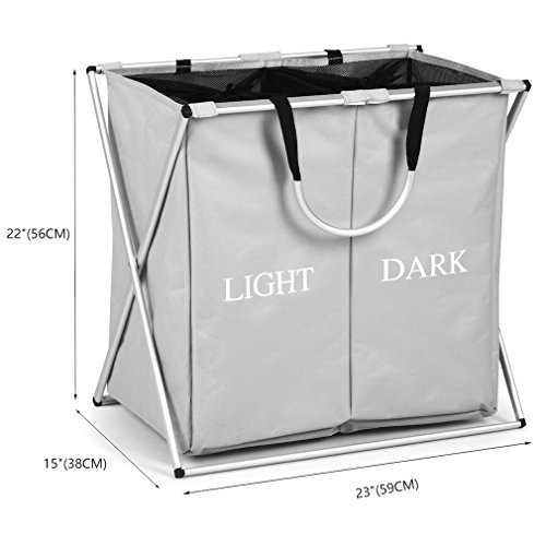 Studio : XMCOWAYOU Publisher : XMCOWAYOU Binding : Kitchen Product Description Description: Separating your colored, light and dark clothes is no longer a headache when you have the Double Laundry Sorter. With it, your house becomes neater and more organized than ever before. There will be no more dirty clothes lying on the floor. Made of high-quality 600D polyester materials, the 2 laundry sorter bags don't accumulate moisture and molds, preventing the buildup of any unpleasant smell in your laundry. Each bag has a roomy interior to accommodate 13 gallons volume of clothes. It also has big openings for easy in and out your laundry items. Each bin of this laundry double sorter is labeled with lettering for better visibility and identification. You no longer have to second-guess before throwing in any garment. Its high-quality aluminum frame is durable and strong enough to hold 2 loads of laundry. Its durability is also what makes this 2-bin laundry sorter ideal for home and commercial use.