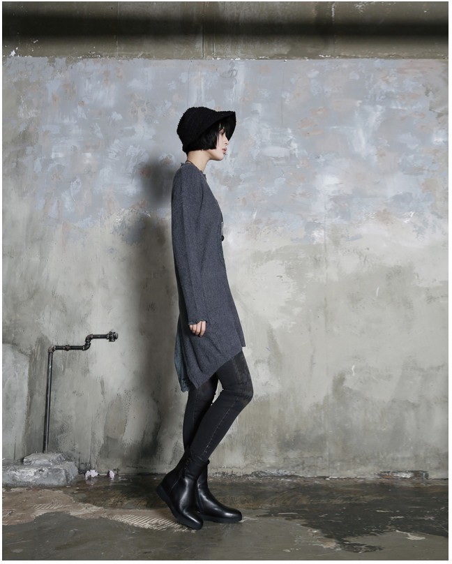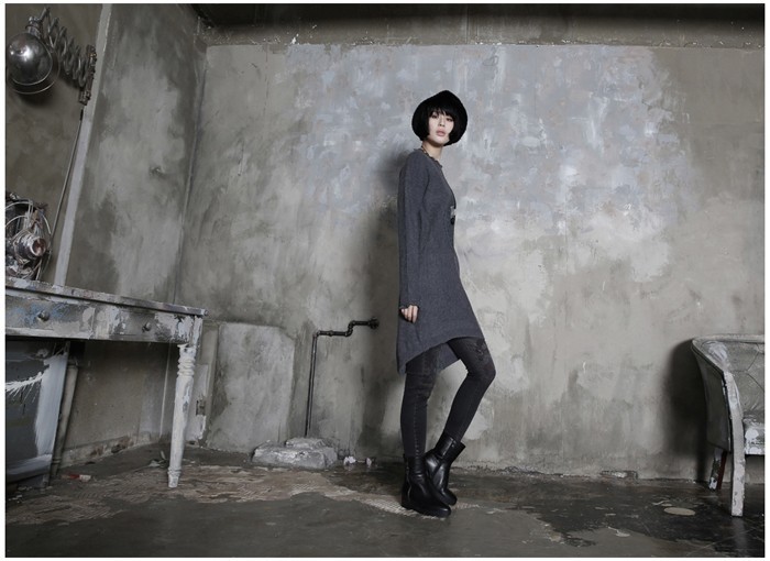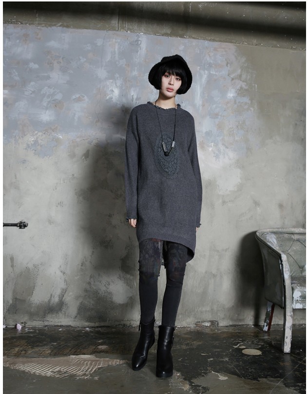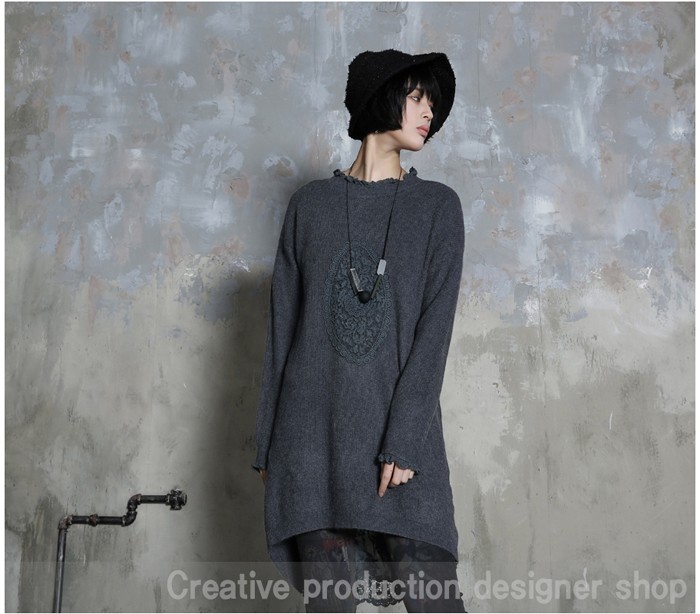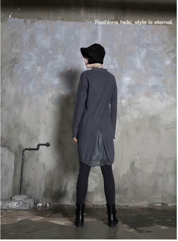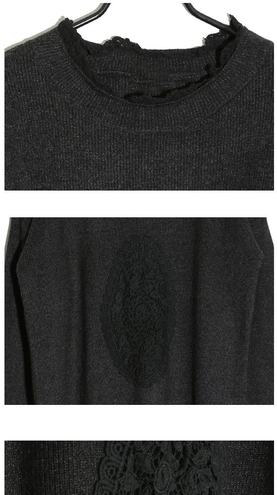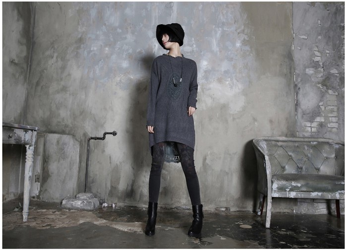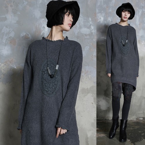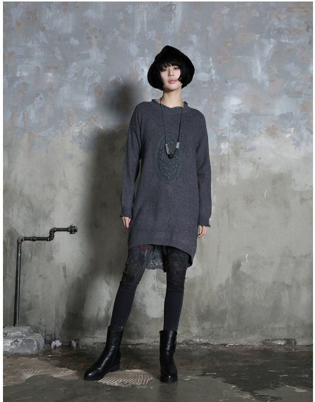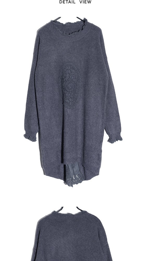 商品名:ワンピース レディース チュニック レース配色 ウール混 長袖 秋 冬 2017 モード系 個性的 40代 ファッション