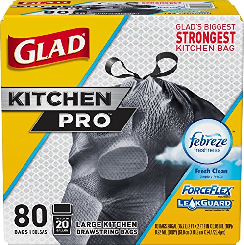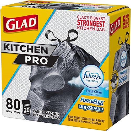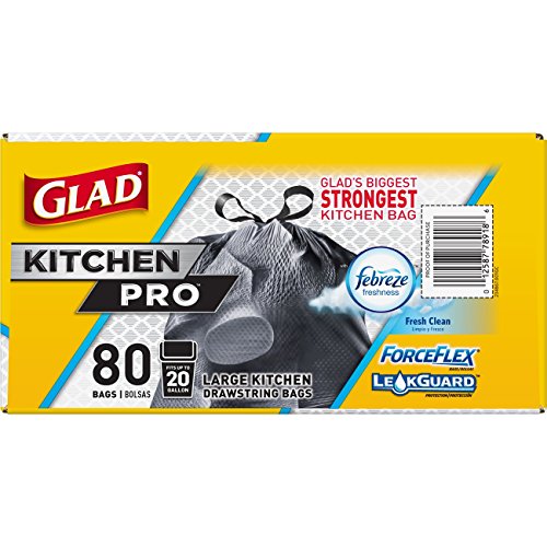 Glad ForceFlex Kitchen Pro Drawstring Trash Bags - Fresh Clean - 20 Gallon - 80 Count (Packaging May Vary)