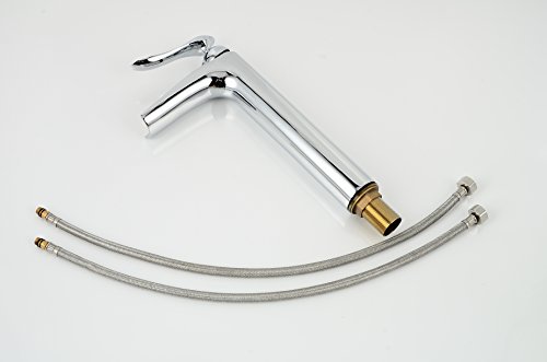 -. Feature : Brass construction, ensuring quality and longevity / Including mounting hardware, hot & cold water hoses, 9/16" Compression / Beautiful chrome finish, build to resist scratches, corrosion and tarnishing / Smooth, long lasting, and drip-free operation ceramic disc cartridge / Tall spout height, perfect to match bathroom above the counter sink bowl