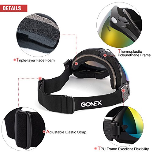 Gonex Pro Ski Snow Goggles OTG Anti-fog Windproof UV Protection with Double Spherical LensFriendly Notice1. Please remove the protective film of inner lens before use.