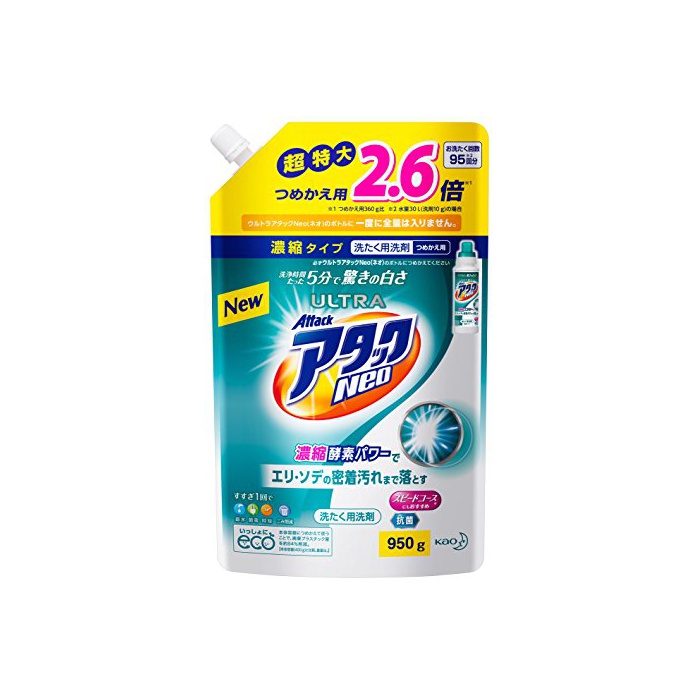 원본상품명: 【大容量】ウルトラアタックNeo 洗濯洗? 濃縮液? 詰替用 950g(2.6倍分)
