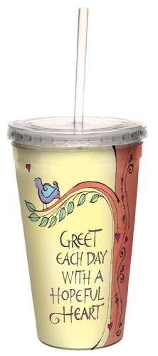 Tree-Free Greetings cc33922 Greet Each Day by Joanne Fink Artful Traveler Double-Walled Cool Cup with Reusable Straw, 16-Ounce