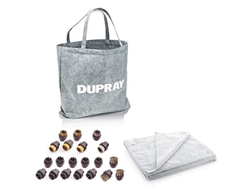 Product Description Compatible with Dupray steam cleaners only. This popular pack includes all the essentials for steam cleaning: small brushes, microfiber cloths and a felt accessory bag. Included: - 1 felt accessory bag - 5 microfiber cloths - 10 nylon brushes - 5 brass brushes - 3 horsehair brushes - 2 stainless steel brushes 0