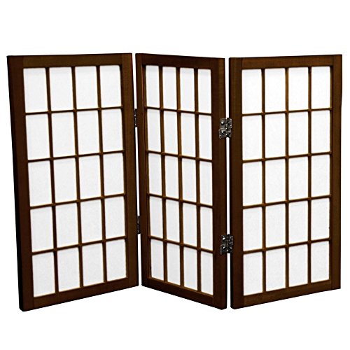 Oriental Furniture 2 ft. Tall Desktop Window Pane Shoji Screen - Walnut - 3 Panels