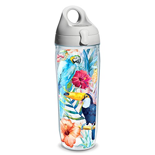 Tervis Parrots And Pineapples Wrap Clear Inner Water Bottle with Grey Lid, 24 oz