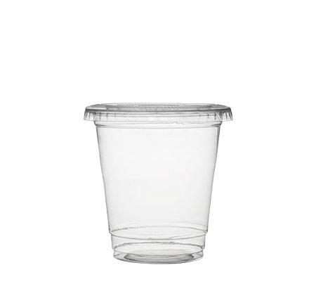 50 count 7 oz. Clear PET Plastic Cup and Flat Straw Slot Lid w/ Signature Party Picks