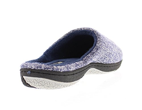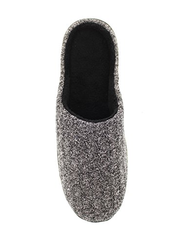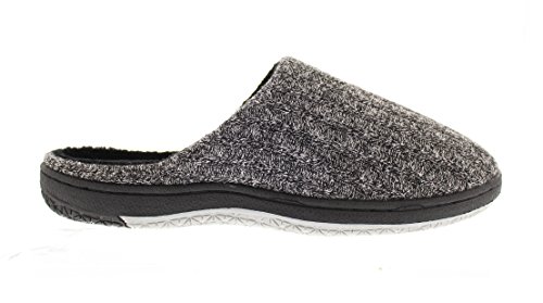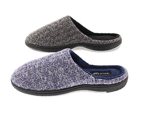 -. Feature : Two toned ribbed knit round closed toe slippers for men / Soft and cozy color contrast plush fleece lining for ultimate warmth and comfort on cold weather chilly days and nights. / Comfortable memory foam cushioned insole molds to fit the shape of your foot. Open back mule design not only makes it easy to slip in and out, but also keeps feet breathable and sweatproof. / Athletic inspired traction hard rubber sole made durable for wear inside at home as indoor scuffs or casual slip-on and off outdoor clogs for walking around outside. / This mens non-slip hoodback slipper is available in classic heather black and navy blue. These scuff slippers are available in size S, M, L, and XL and can fit a man's shoe size 7-13. The Jona slipper design is also available in boys sizes so that you can stylishly match footwear house shoes with your kid. Please see our separate listing in our Amazon store to purchase this slipper for children.