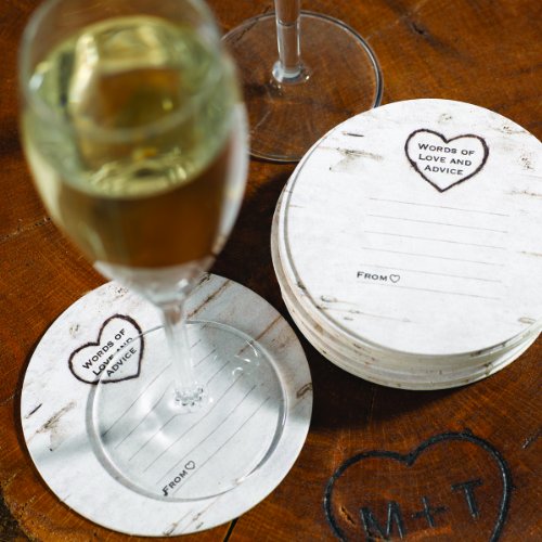 - Rustic wood grain design with heart that includes text: Words of Advice