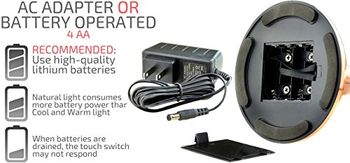 - OPTIONALLY CORDLESS – This mirror is operated by either 4 AA batteries (not included) or AC adapter, while also being conveniently portable and cordless if you wish.