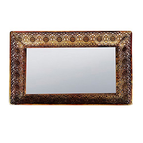 - This 13 3/4W X 9 1/2L antique style mirror/vanity tray with curlicue detailing makes a beautiful gift and enhances any home.