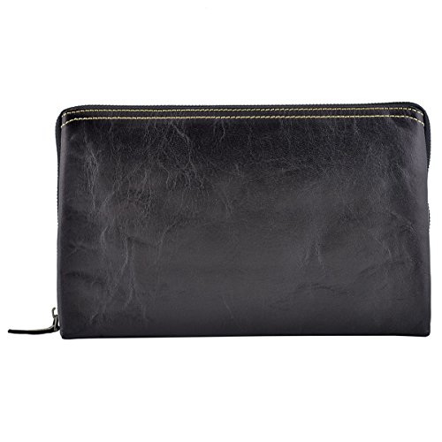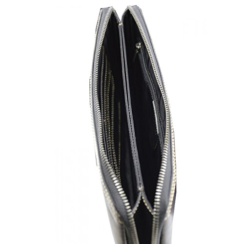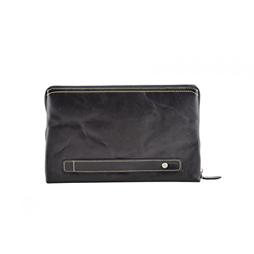Product Description Genuine Leather Unisex Clutch - Harvey Genuine 100% Italian leather clutch. Essential and trendy design, perfect for those who like practicality without renouncing elegance. Outside - 100% genuine Italian leather - zip closure - leather band with metal button - leather and metal details Inside - synthetic fabric lining - two separate compartments - pocket with zip closure - credit card pockets External Dimensions 26 x 3 x 16 cm Weight 0.3 Kg 0
