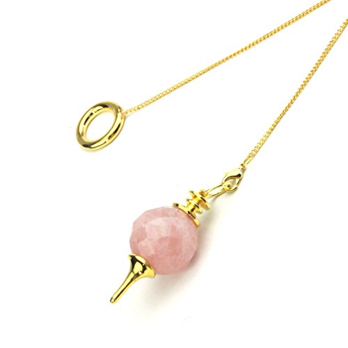 ◆대입20mm옥의 로즈 쿼츠의 미러볼 컷을 사용한 키라《메키》의 깨끗함인 화려한 골든 컬러의 고품질 펜듈럼입니다.반짝반짝 빛나는 돌과 샤프이다디자인의 궁합이 발군입니다.