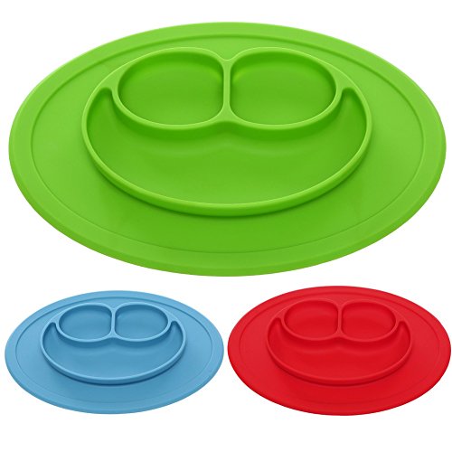 -. Title : Integrity Smiling Non-toxic BPA Free Silicone Non-Slip Baby Placemat Plate for Kids Children Oval (Green)