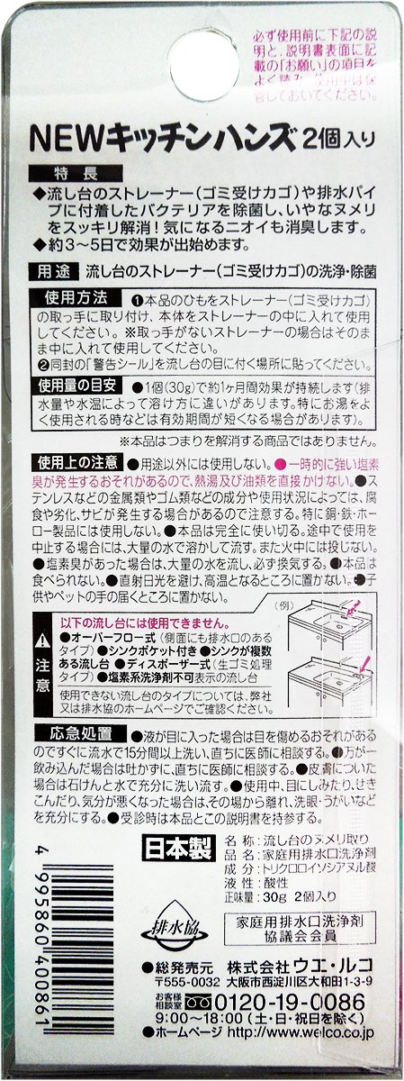 "NEW Kitchen Hands 30g * 2P" is an easy-to-clean detergent containing 2 packs that cleans disgusted null nulls of drains by simply hanging them on a sinker strainer and cleans up clogged pipes.