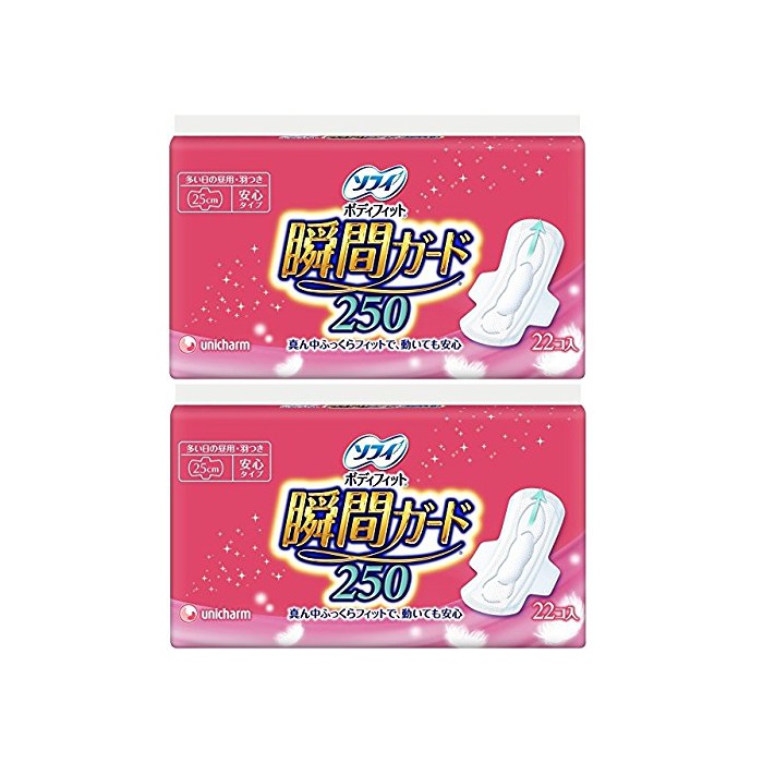 원본상품명: 【まとめ買い】ソフィ ボディフィット 瞬間ガ?ド 250 多い日の?用 羽つき 25cm 22コ入×2個パック