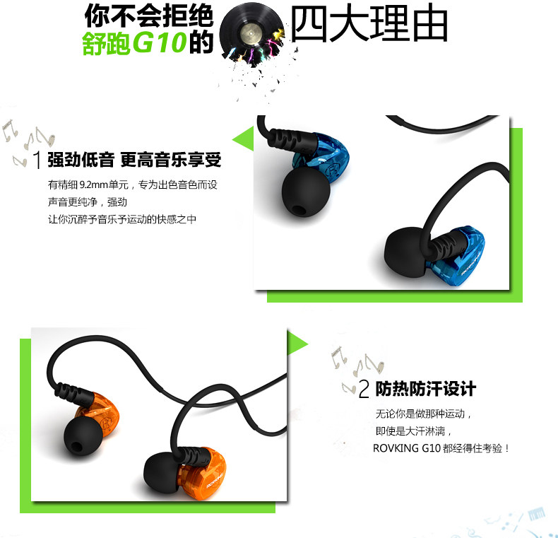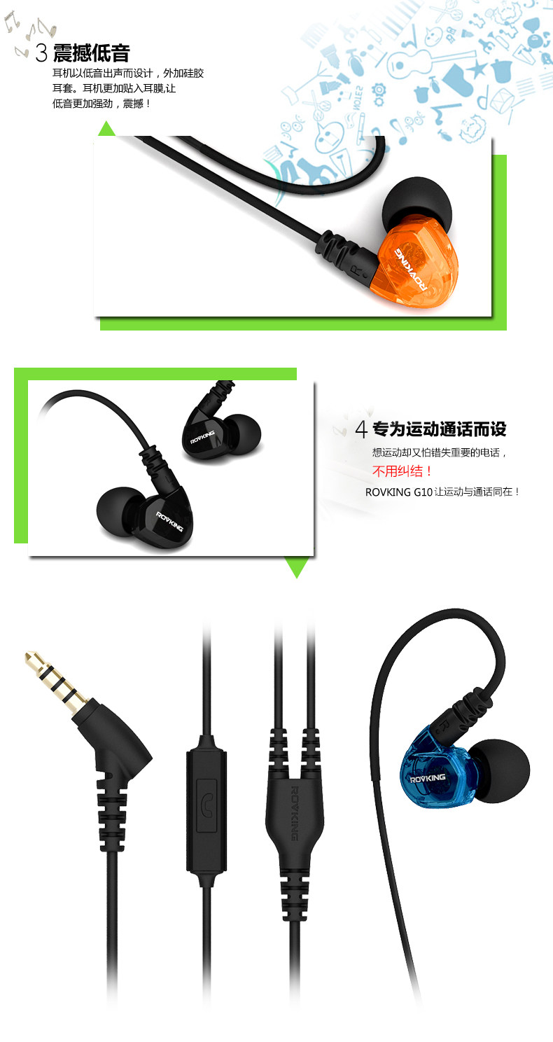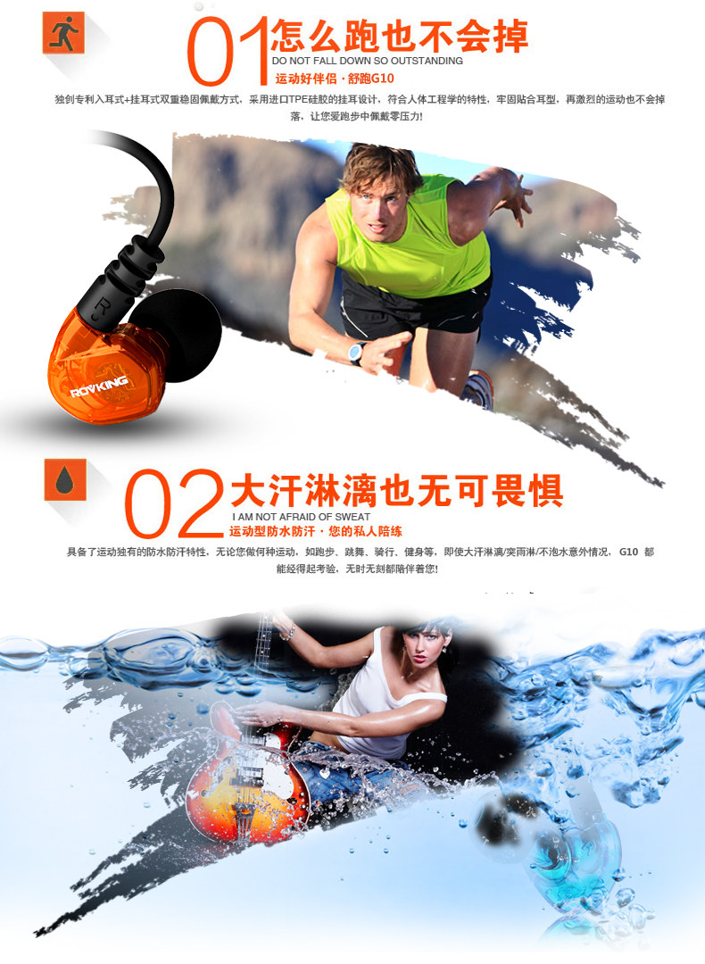 G10-ear headphones bass running phone wire hanging ear sports headset with Universal