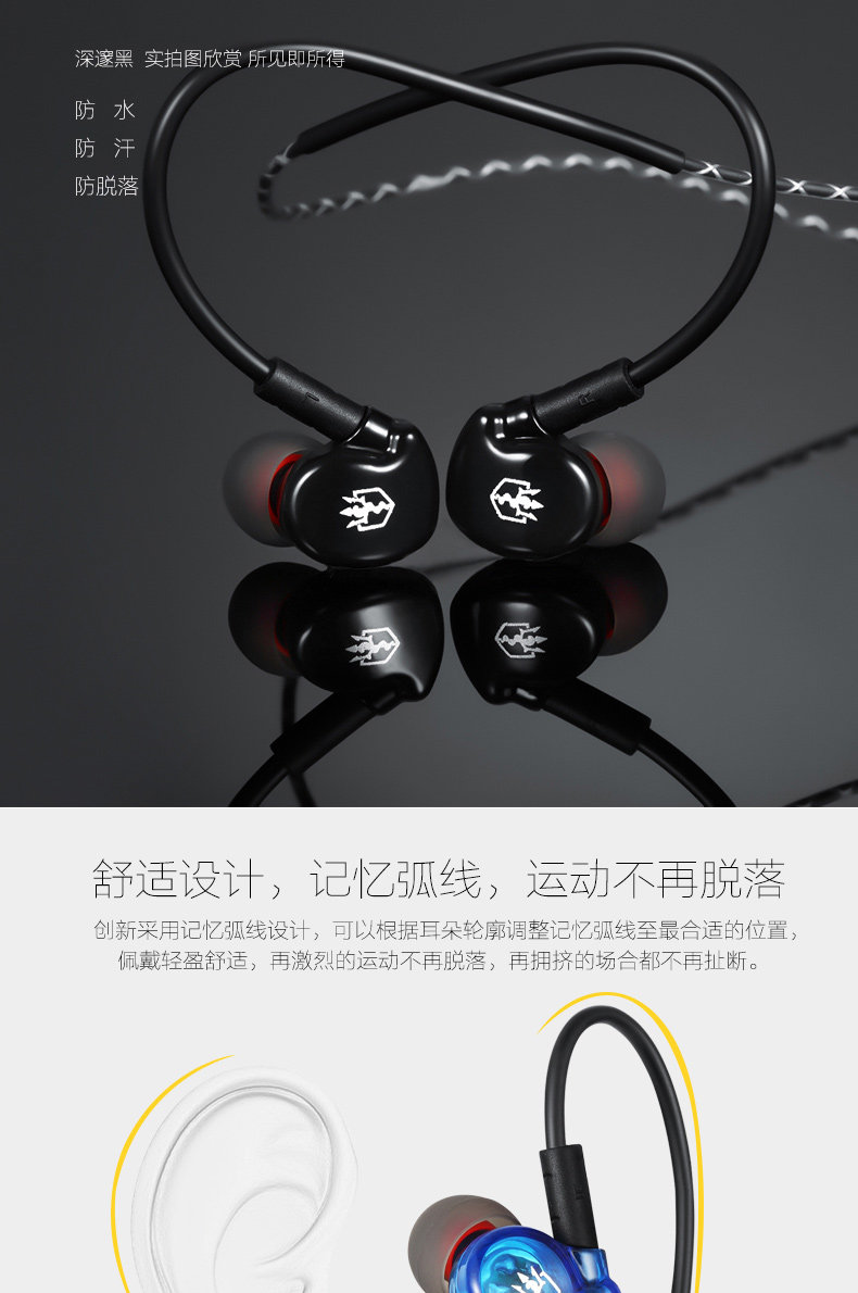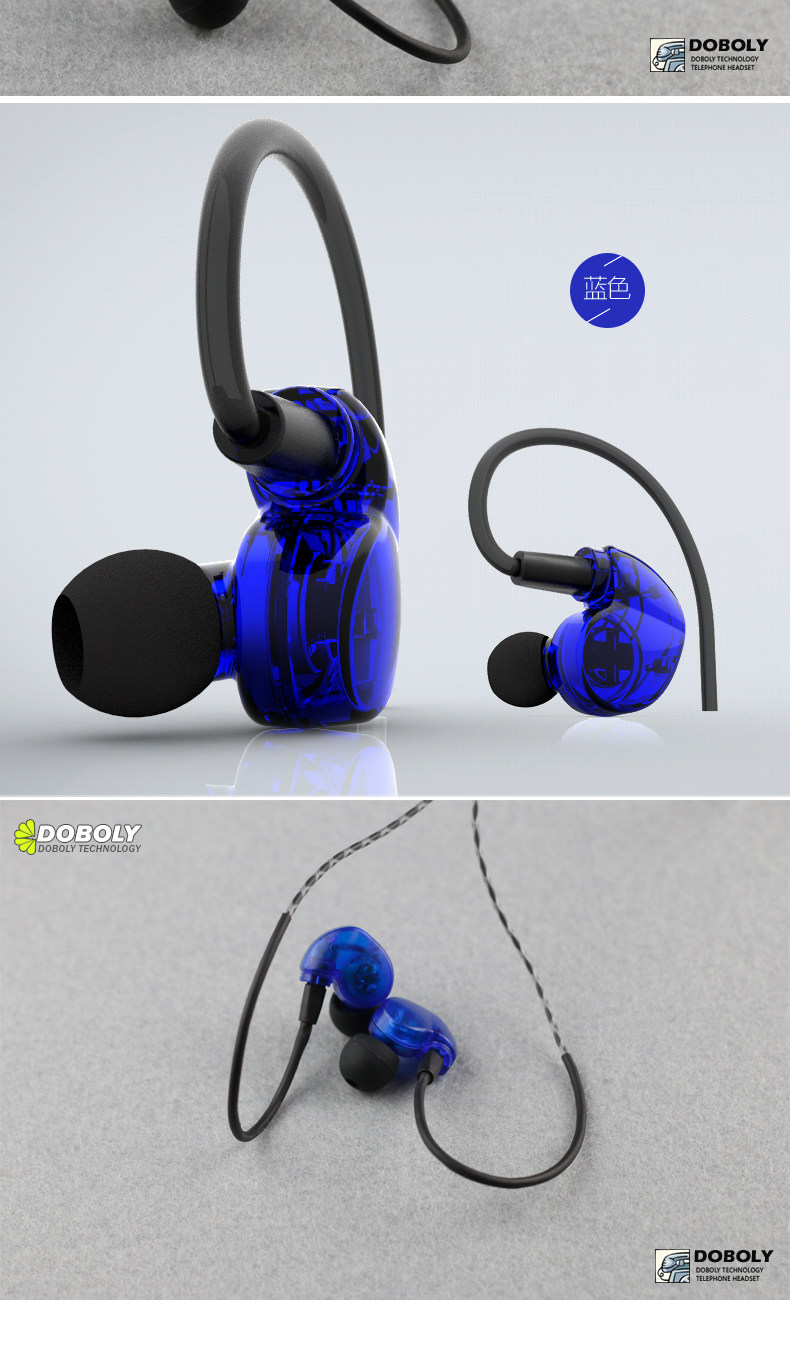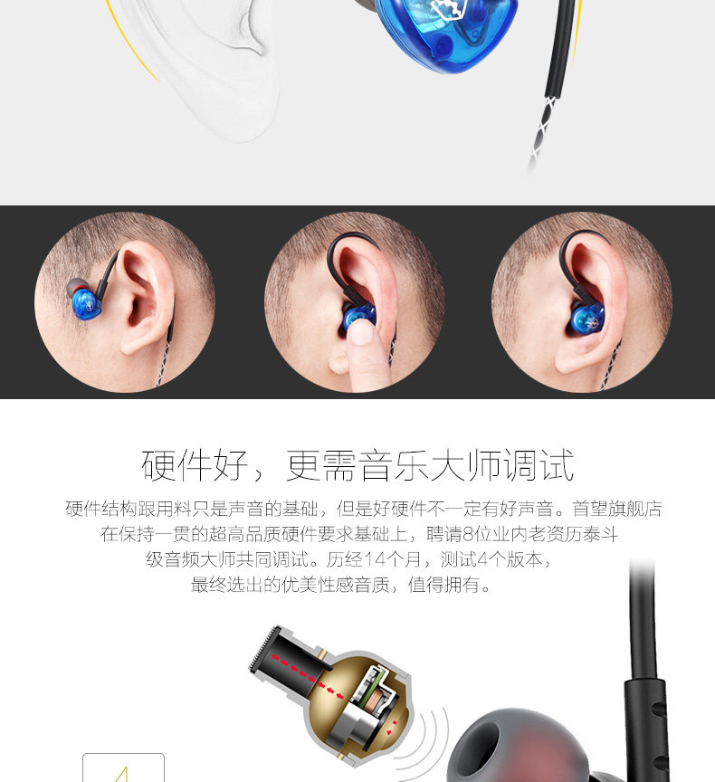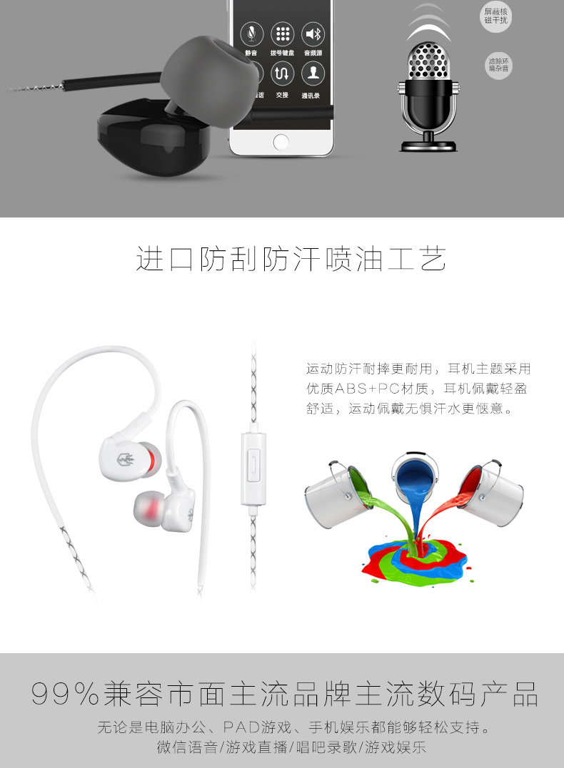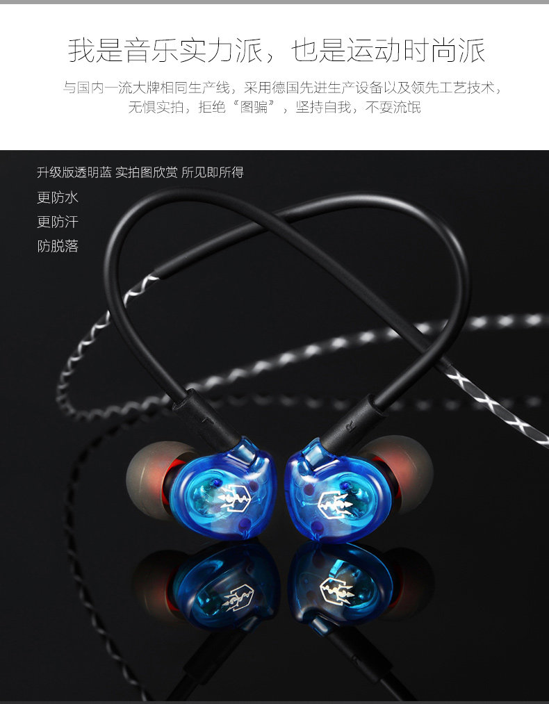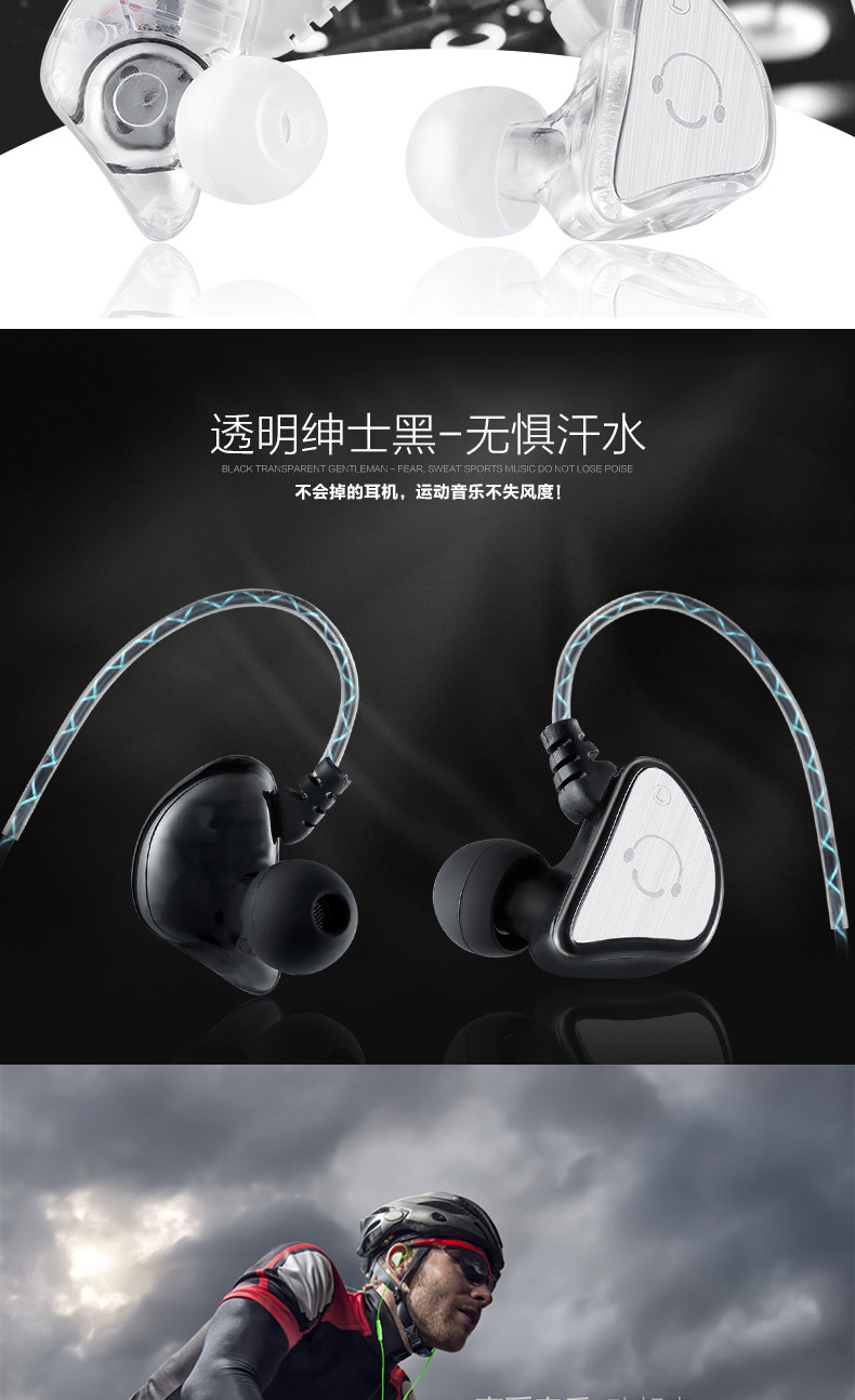 W1-ear headphones bass running phone wire headset hanging ear earplugs tide Belt Movement