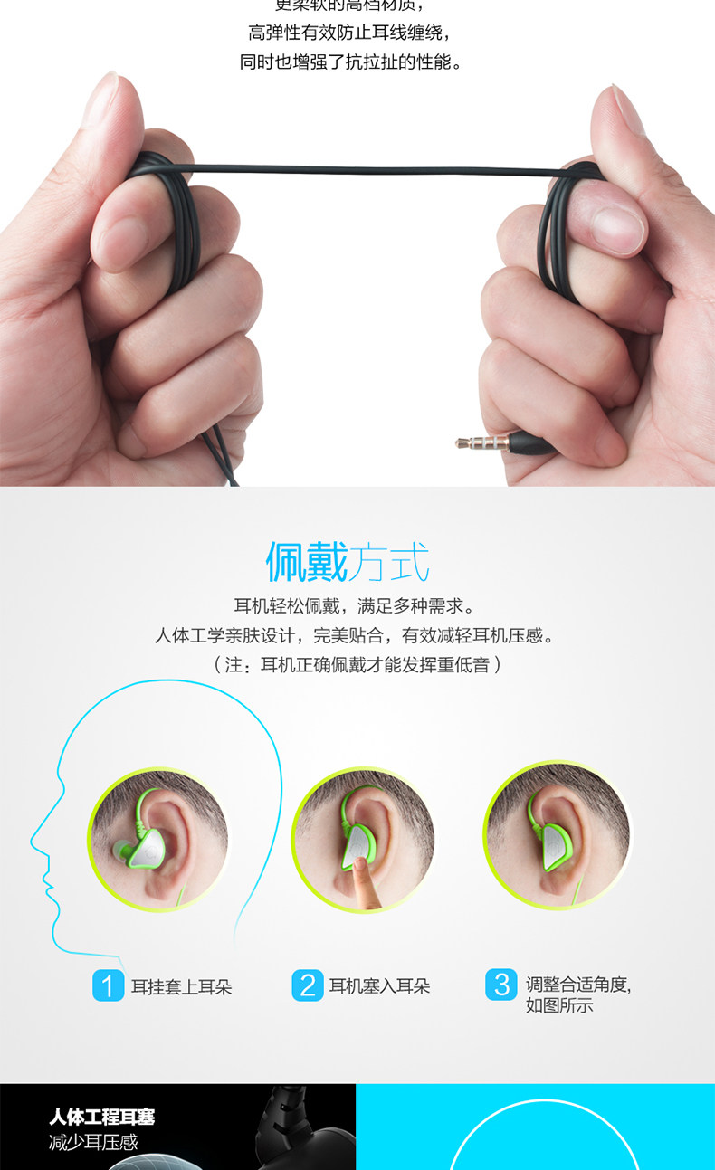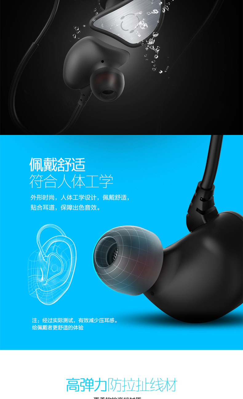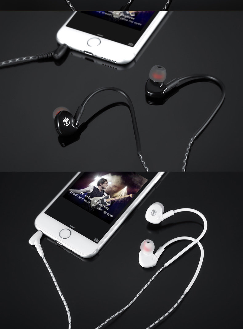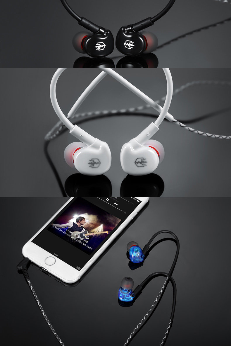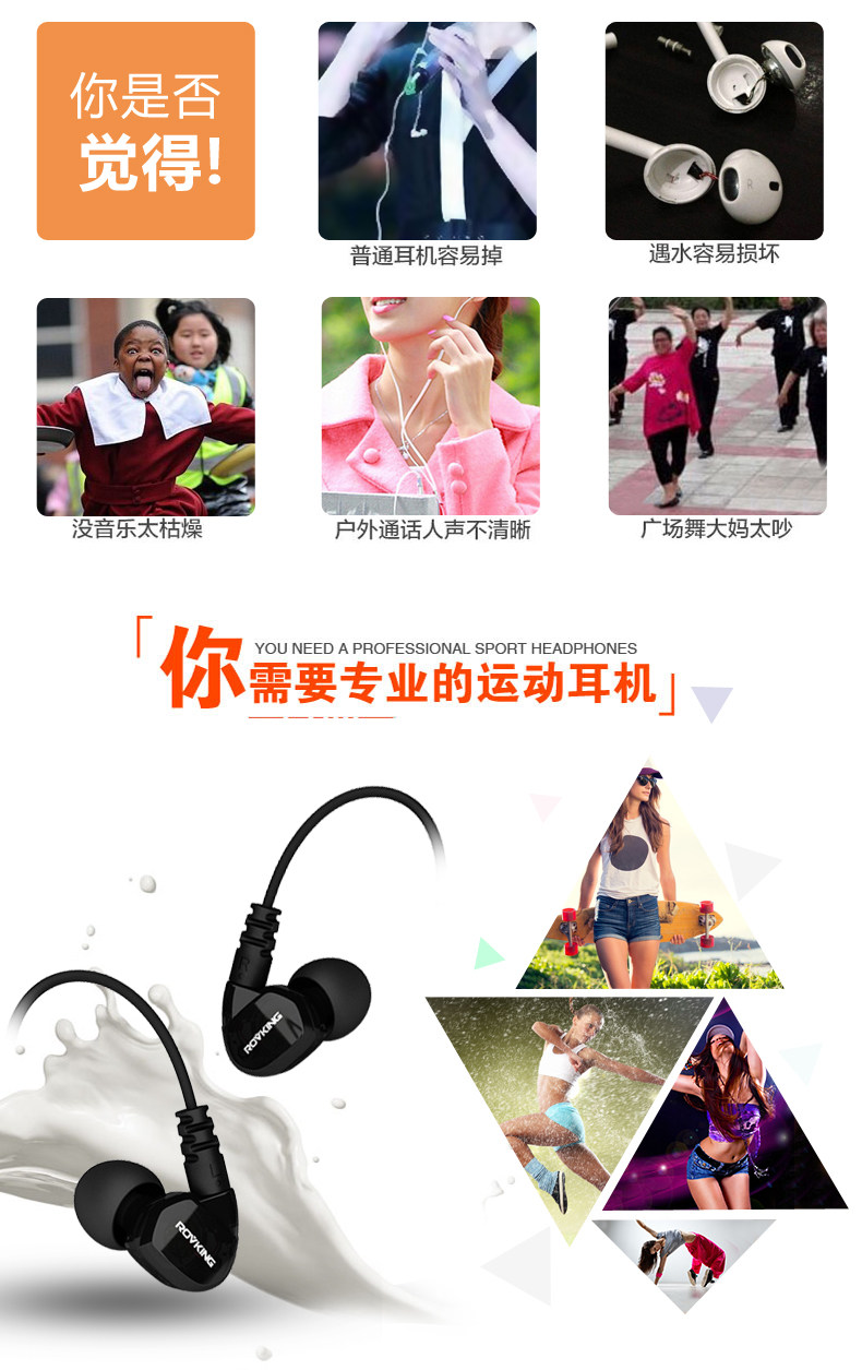 W1-ear headphones bass running phone wire headset hanging ear earplugs tide Belt Movement