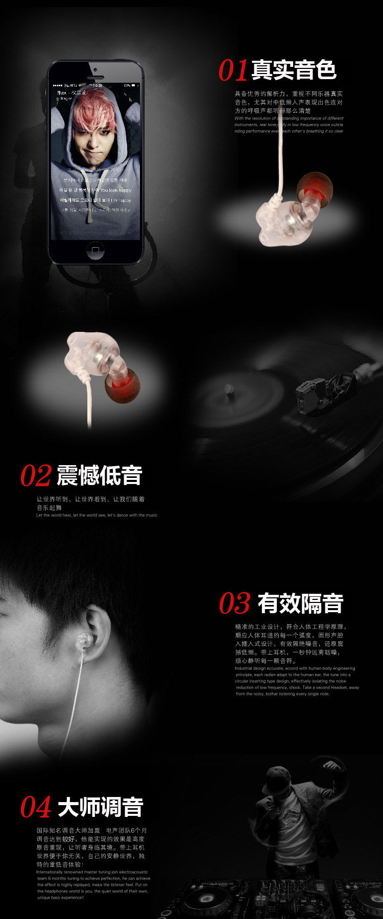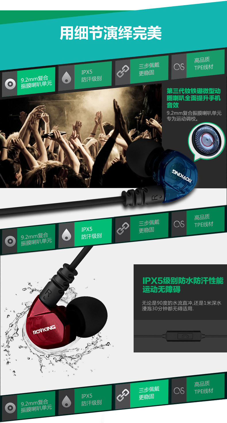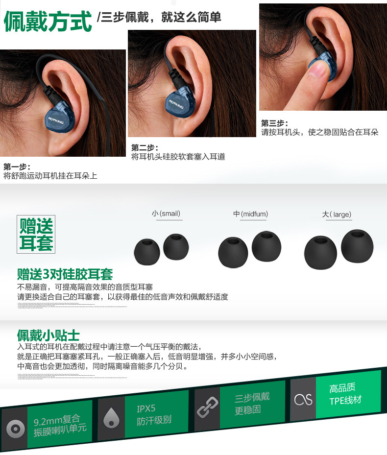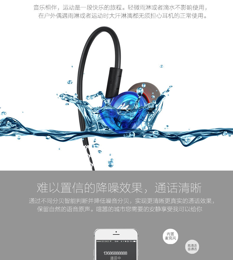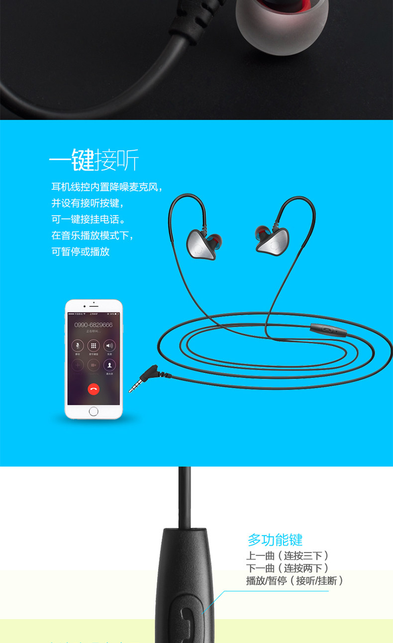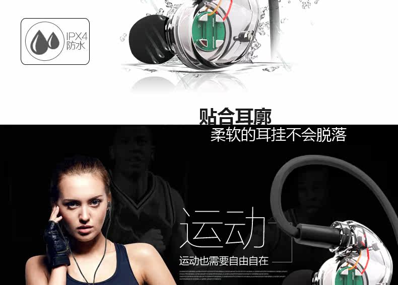 W1-ear headphones bass running phone wire headset hanging ear earplugs tide Belt Movement