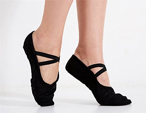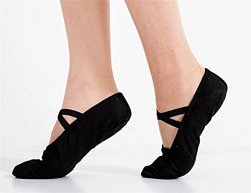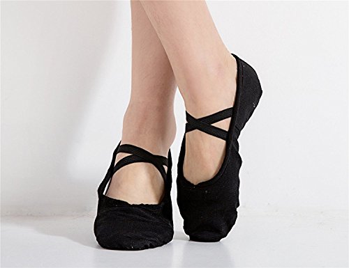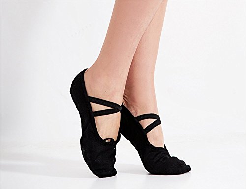 Split sole ballet shoe with criss-cross elastic straps and stretch topline.