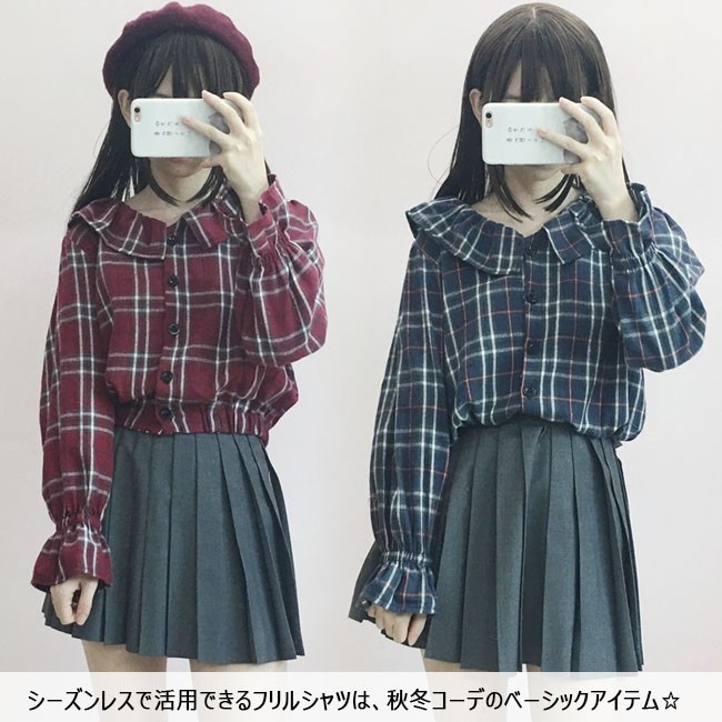 | 商品名 | タータンチェックシャツ フリルシャツ タックシャツ フリルブラウス レディース 森ガール風 ヴィンテージ 学院風 通学 可愛い 2017秋冬新作 |