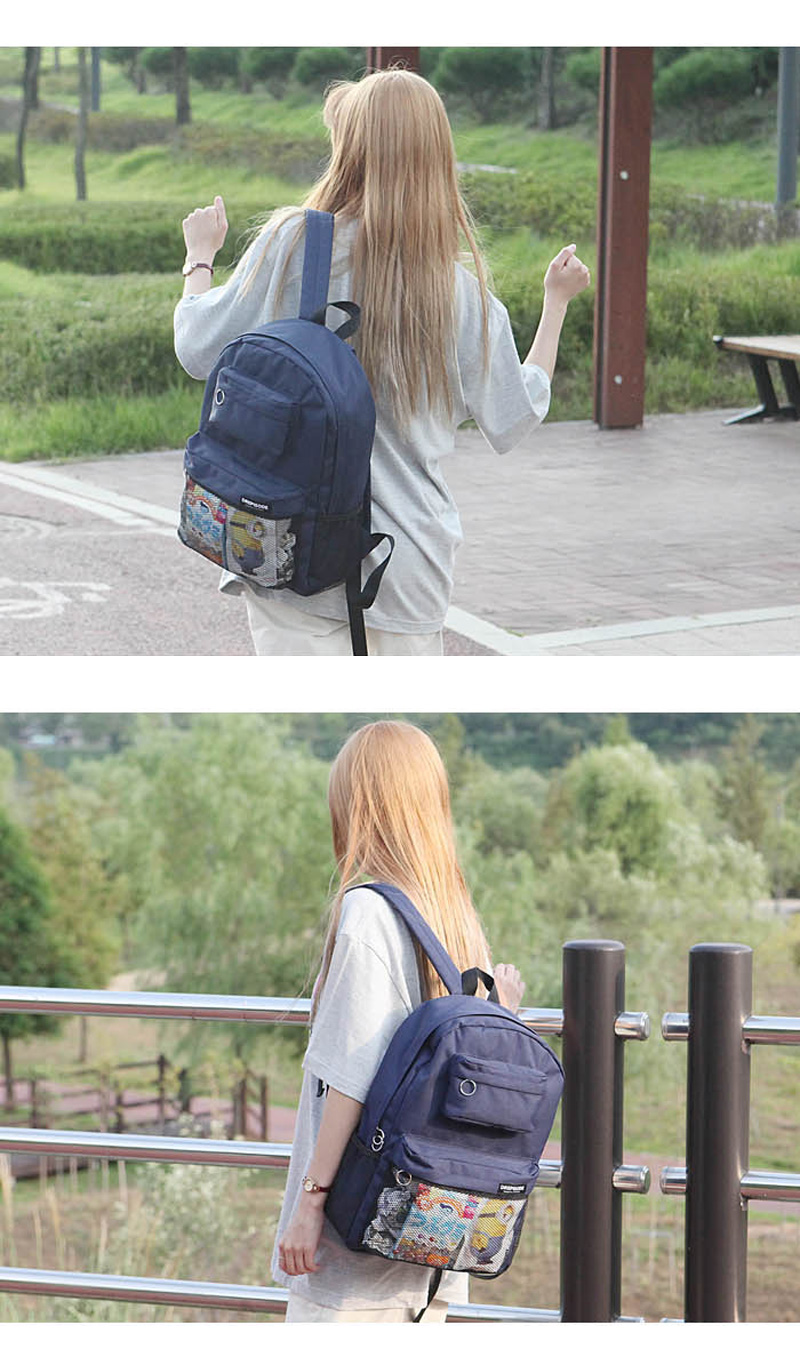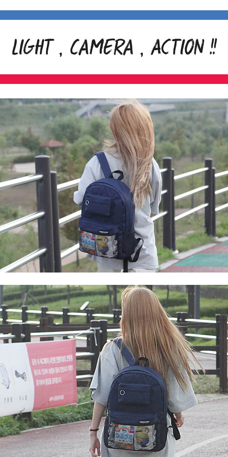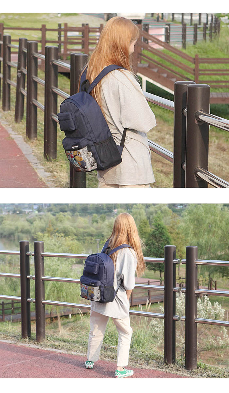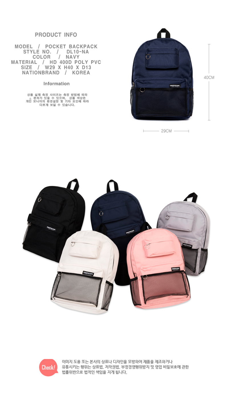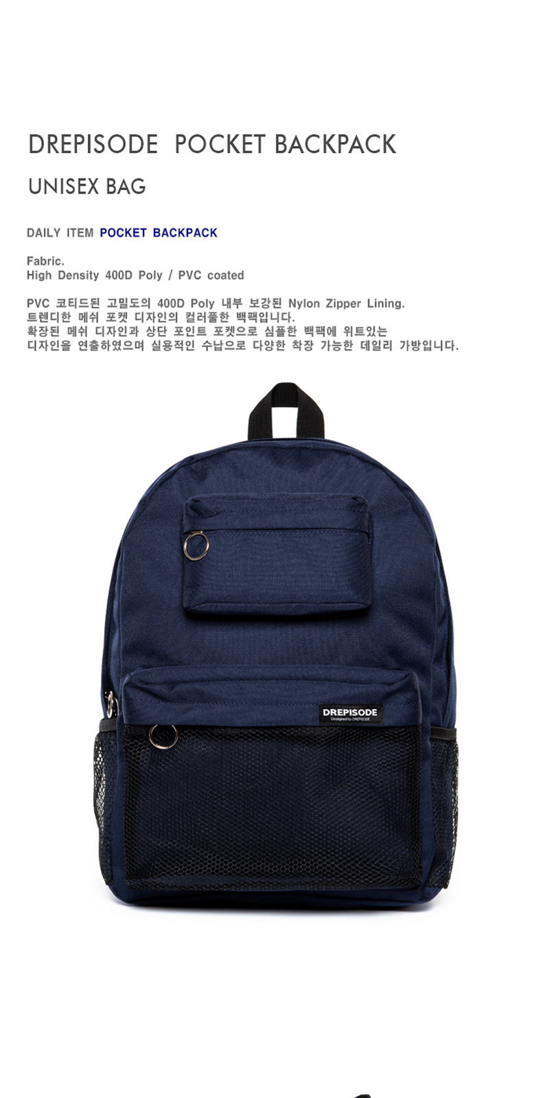 트렌디한 메쉬 포켓과 상단 포인트 포켓으로 심플한 백팩에 위트있는 디자인을 연출하였습니다.