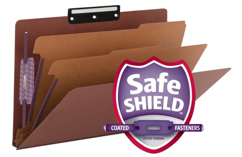 -. Title : Smead Pressboard Classification File Folder with SafeSHIELD Fasteners, 2 Dividers, 2" Expansion, Legal Size, Red, 10 per Box (19230)