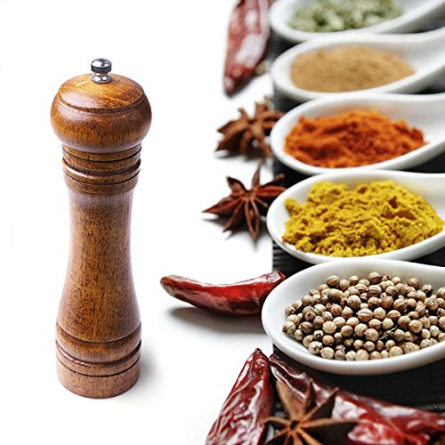8 Inch Wood Spice Salt Pepper Mill Grinder with Strong Adjustable Ceramic Rotor Grinder