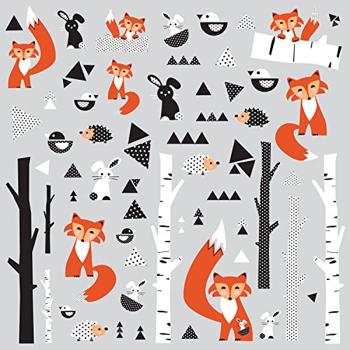 -. Binding : Tools & Home Improvement -. Brand : RoomMates -. Color : Multi -. EAN : 0034878649832 -. Feature : Comes with 60 wall decals; decals range in size from 1"wide x 1.5"high to 6"wide x 10.75"high / Easy to apply - just peel and stick / Applies to any smooth surface / Decals are removable and repositionable with no sticky residue / Wall Decals made in the USA -. IsAutographed : 0 -. Label : RoomMates -. Manufacturer : RoomMates -. Model : RMK2721SCS -. MPN : 54116 -. NumberOfItems : 1 -. PackageQuantity : 1 -. PartNumber : 54116 -. ProductGroup : Home Improvement -. ProductTypeName : BUILDING_MATERIAL -. Publisher : RoomMates -. Studio : RoomMates -. Title : RoomMates Fox Forest Peel and Stick Wall Decals -. UPC : 034878649832
