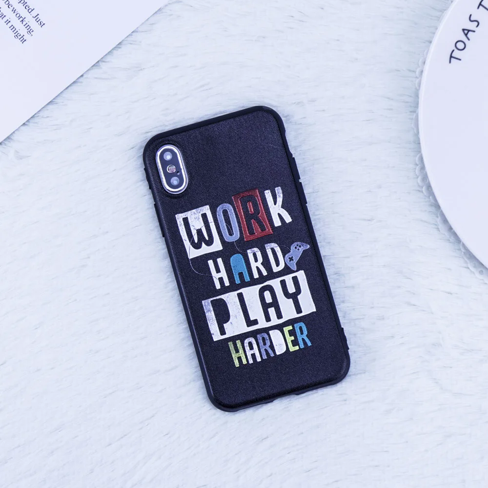 Features:Fashion Letter WORK HARD PLAY HARD protect tpu cover
