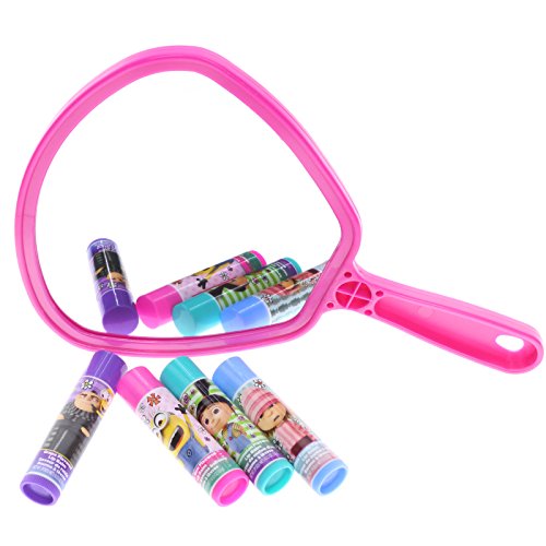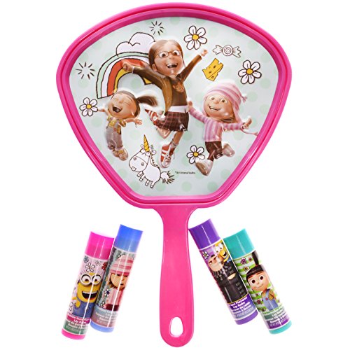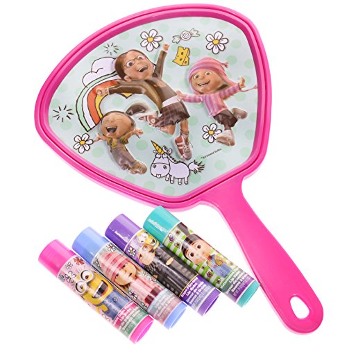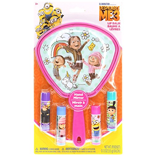 FAVORITE CHARACTERS The tubes and handheld mirror are all decorated with characters from the movie Despicable Me 3. Kids will have fun showing their friends this spunky collection.
