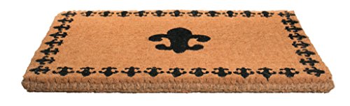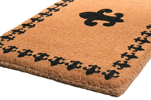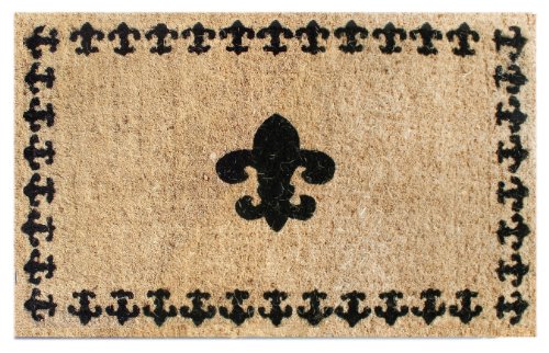 Enhance the entrance of your home with this high quality, hand-tufted coir doormat from Imports Decor. Handwoven from the best quality coir, and printed with a weather resistant black ink in a classic Fleur de Lis with a border of mini Fleur de Lis. This traditional coir doormat is 1-1/2-inch thick. Coir is the natural fibre extracted from the husk of coconuts. Coir fibre is relatively waterproof, has superior scrubbing power and is resistant to the elements. With a coir doormat from Imports Decor, you can feel confident dirt and debris will be left at the front door and not in your home. Item #698TCMFeature