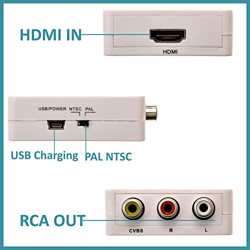 Brisk Links 1080P HDMI To RCA Composite CVBS AV Output Video Audio Converter Adapter - Includes Bonus High Speed HDMI Cable 6 FT and RCA Cable