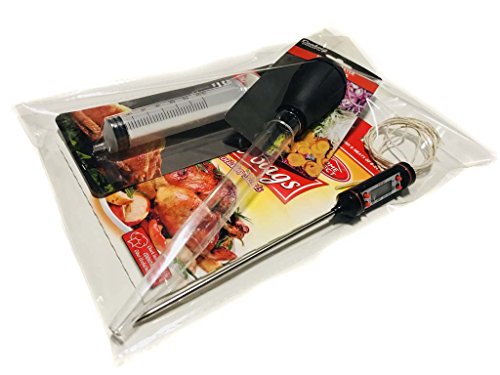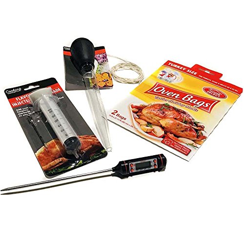 Turkey Cooking Kit (5-Pc Set): Thermometer/ Baster/ Oven Bags (2 XL)/ Injector Syringe/ Twine Cotton - Thanksgiving Cooking Supplies Prep Accessories w/ Bonus Cooking Guide