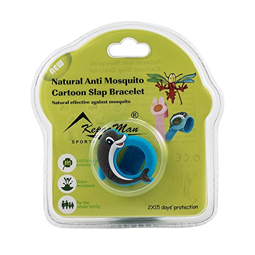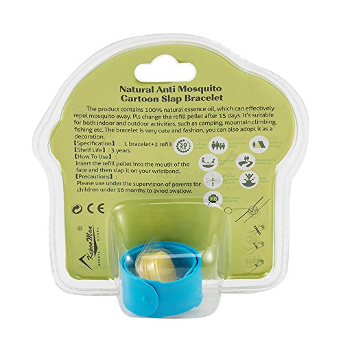 KepooMan Waterproof Mosquito Repellent Cartoon Slap Bracelet with 2 Refills, Natural Anti Mosquito Wristbands for Kids and Babies with 360 Hours Use Per Refill Pellet (Blue)