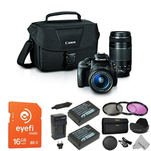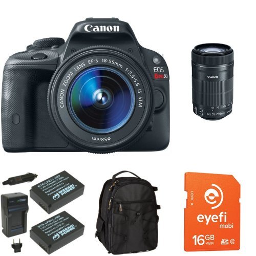 18.0MP APS-C CMOS Sensor DIGIC 5 Image Processor 3.0 Clear View II Touchscreen LCD ISO 100-12800, Expandable to 25600 Full HD 1080 Video with Continuous AF 4.0 fps Continuous Shooting 9-Point AF System Scene Intelligent Auto Mode Compact and Lightweight; Weighs 0.8 lb EF-S 18-55mm f/3.5-5.6 IS STM LensFeature