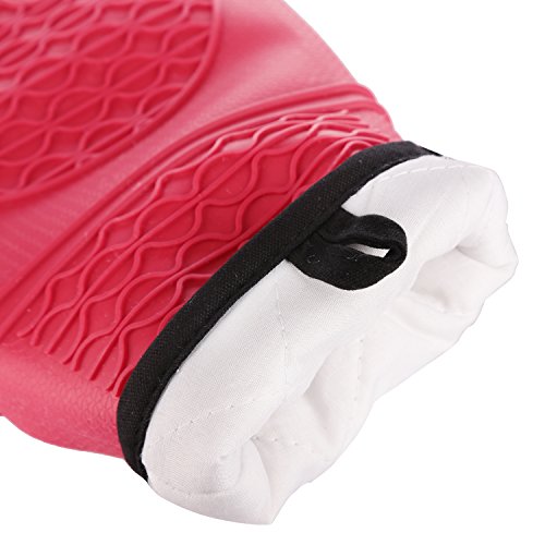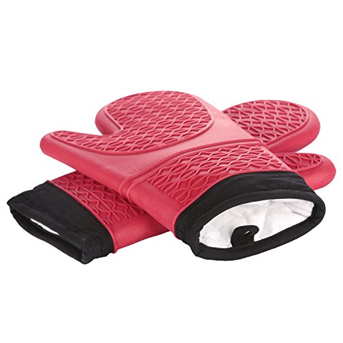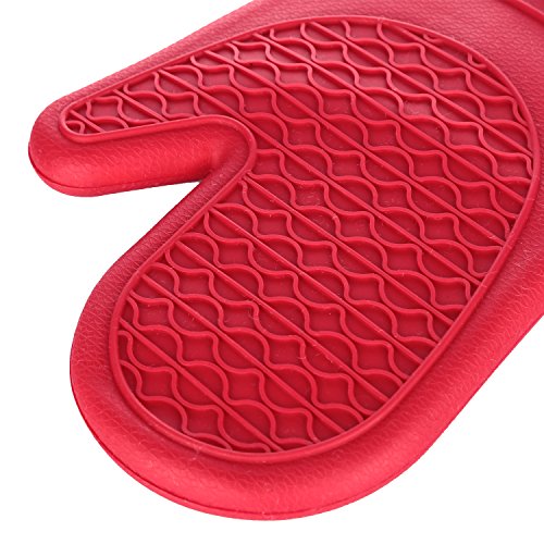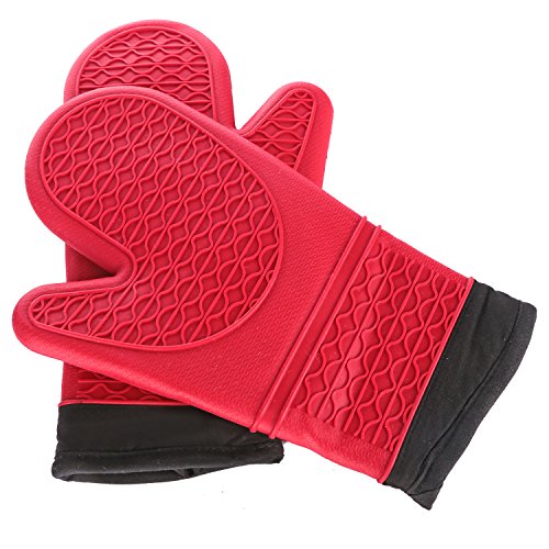 Silicone Oven Mitts - 1 Pair of Extra Long Professional Heat Resistant Potholder Gloves - Oven Mitt Set of 2 Color Red