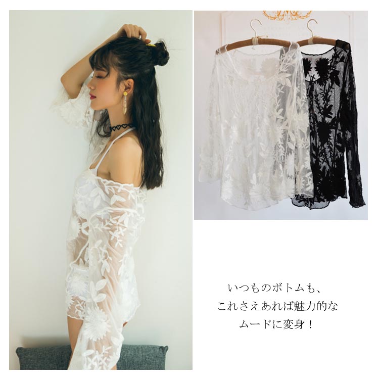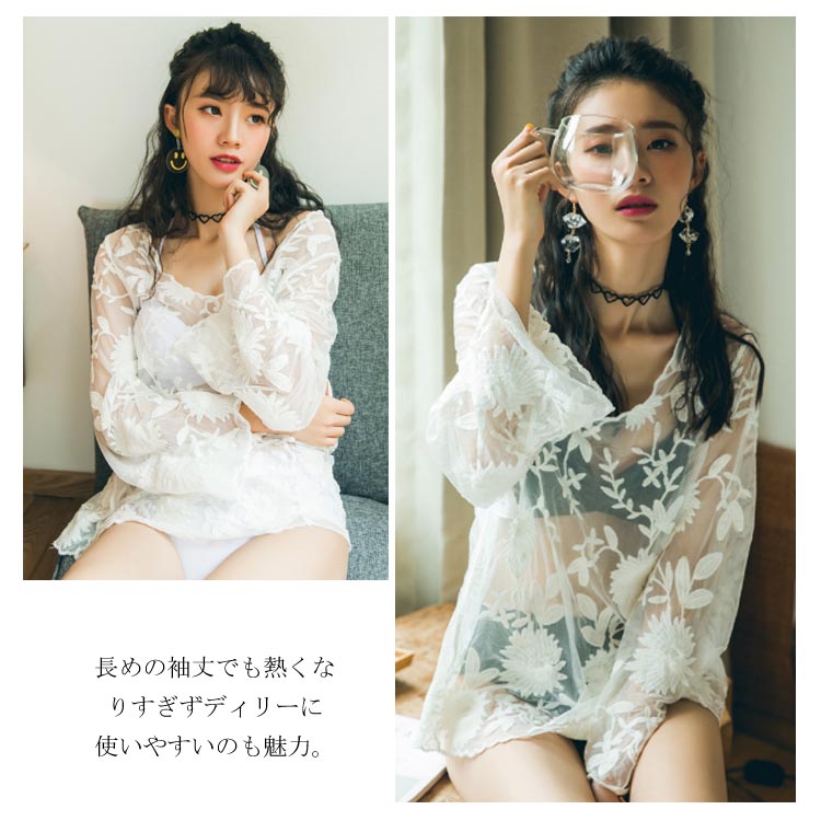 | 夏季はエアリーなレイヤードコーデが人気デス♪軽やかな透かし編みで、フェミニンな表情を加えています。着こなしは、水着のアウターとしてもOK★ 長めの袖丈でも熱くなりすぎずディリーに使いやすいのも魅力。いつものボトムも、これさえあれば魅力的なムードに変身!他にもこの夏季は、サマーファッションとの相性が抜群にイイです◎ | |