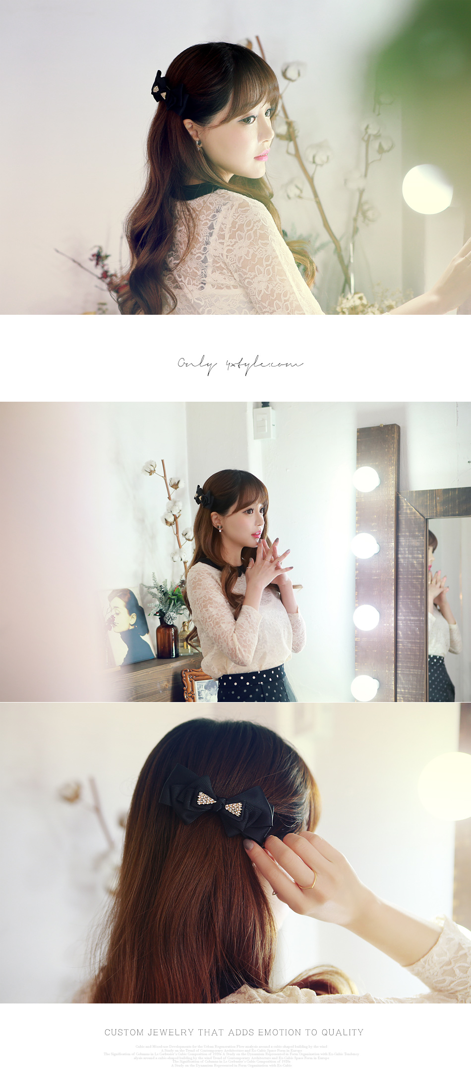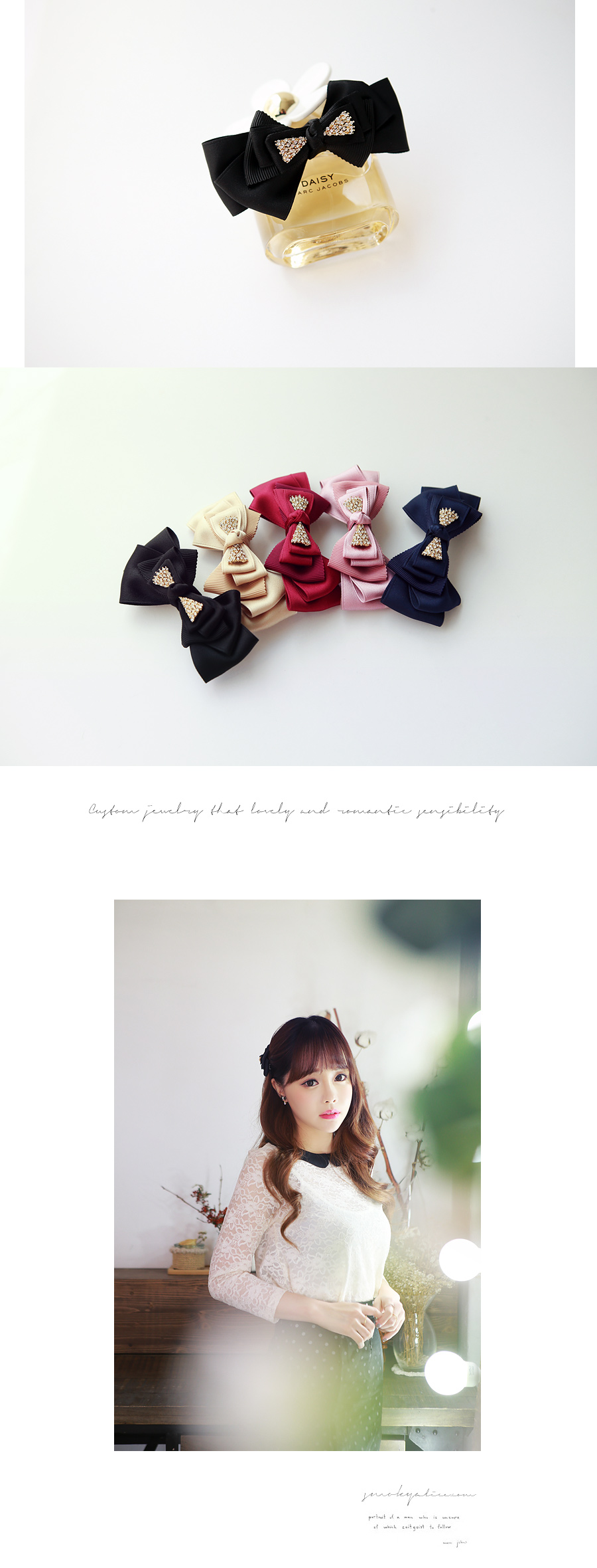 리본 위로 큐빅장식을 더해주어 더욱 고급스러운 제품.
